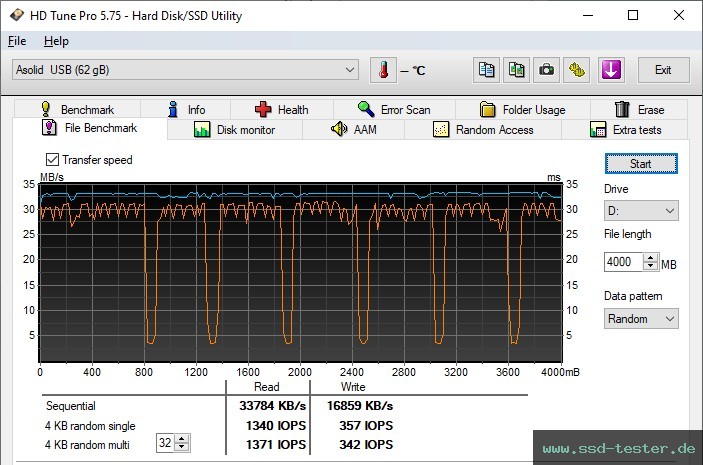 Ähnlich wie bei AS SSD werden auch hier zwei sequenzielle und zwei zufällige Leistungstests durchgeführt.